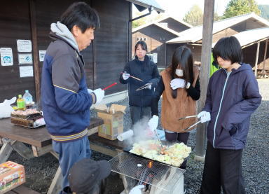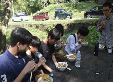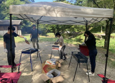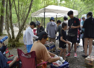 火おこしやごはんの準備は、キャンプでも担当する生徒たちが