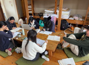 普段勉強会に参加している生徒や、これから勉強に挑戦してみたいと思う生徒が参加する2泊3日の冬合宿。今年は残念ながら1名が体調不良によりお休みとなり、8名の参加となりました。 |