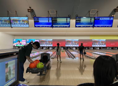 中学生の子達はガーターありの難しいレーンで挑戦。