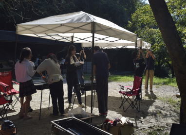 日陰をテントで作って、こまめな水分補給で乗り切りました。 |