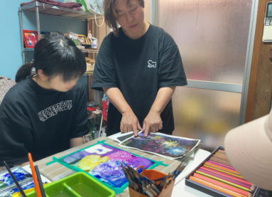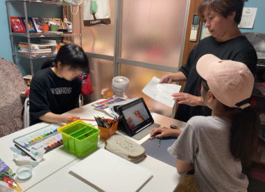 中学生の女の子は透明水彩に、小学生の女の子は人物クロッキーに挑戦。 |