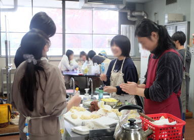 カメパン作りは、中学生の子達がこねる作業など力作業も