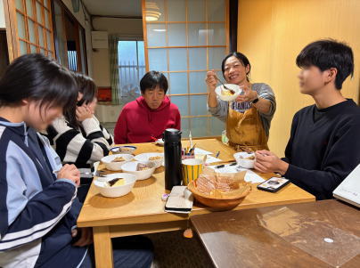 ![]() お昼ごはんは、みんな一緒におしゃべりしながら。 |