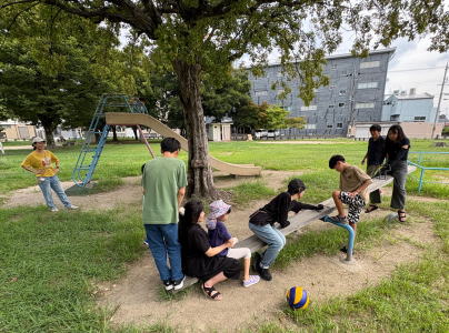 ![]() 最近は公園でバレーボールをよくします。 |
